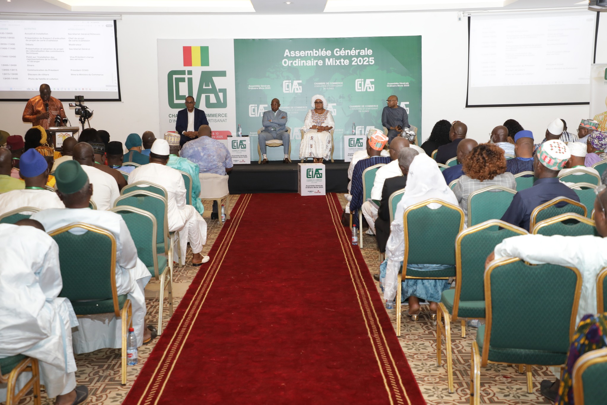 La cérémonie de clôture de l’Assemblée Générale Mixte 2025 de la Chambre de Commerce, d’Industrie et d’Artisanat de Guinée (CCIAG), s’est tenue ce vendredi 10 octobre 2025, sous la présidence de Madame Fatima Camara, Ministre du Commerce.